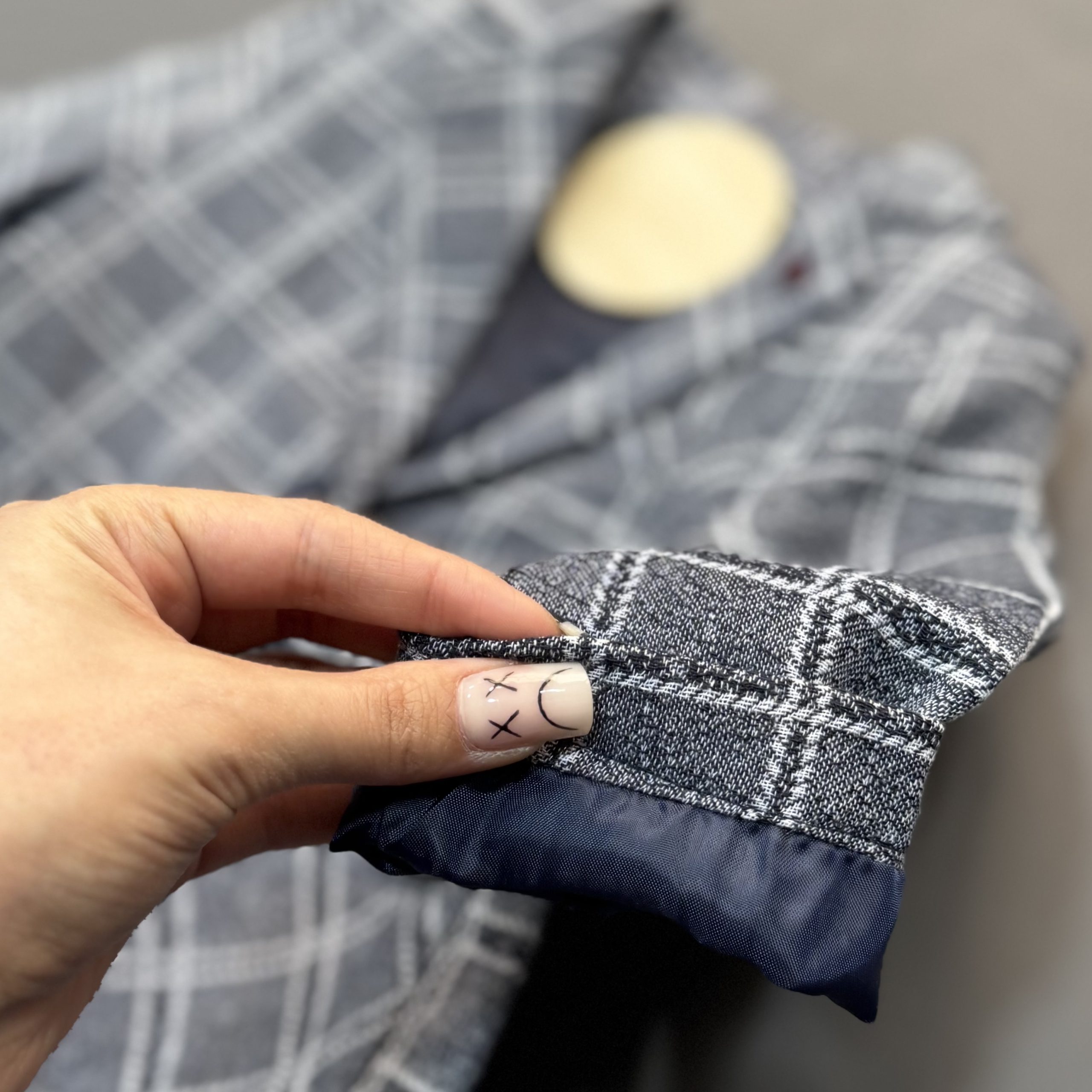 سایز2:قد کت 38/پهنا30/قد آستین از کنار یقه36/قد پیراهن 37/پهنا 29/قد آستین از کنار یقه37/قد شلوار51